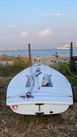 La barca è sempre stata tenuta al circolo con telo copri barca e sacca copri vela, con la barca viene venduta una vela radial e una vela 4.7 da allenamento senza albero basso. Di recente sono state cambiate tutte le cime di tutti i circuiti, sempre sciacquate e tenute a casa all'asciutto. La barca monta la barra del timone in carbonio, l'unica imperfezione è una cricca sulla prua all'altezza dell'attacco tra scafo e coperta: riparazione mai eseguita in quanto ho comprato io stesso la barca già così e non ha mai dato problemi di infiltrazione. La barca viene venduta con carrello per alare la barca in acqua.