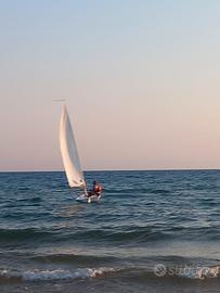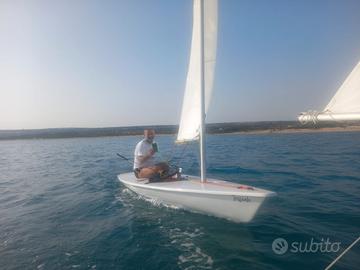 vendo ottimo laser standard, vela semi nuova, albero in due pezzi perfetto, stick perfetto, timone ottimo, deriva ottima, bozzelli e scotta ottimi. telo copribarca originale. si può trasportare sul tetto dell'auto. barca refittata a nuovo l'anno scorso. carrello di alaggio in alluminio super leggero. non necessita di niente. pronta all'acqua. no sognatori. vendo barca a vela, deriva mobile, laser std, vela armo standard, per passaggio a catamarano classe A, valuto scambio.