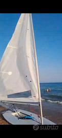 Vendo per poco utilizzo Lasere con vela nuova,pronto per il mare,carrello in alluminio smontabile in 4 pezzi per alaggio molto utile per tirare la deriva a secco. Lunga 4.20 largo 1.39 cm superfice velina circa 7mq Qualsiasi prova