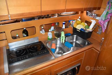 DINETTE CON AMPIA VETRATA CON PORTA SCORREVOLE - MOBILE LUNGO E FRIGO A SX ; A DX GRANDE DIVANO AD L CON TAVOLINO - SOTTO A SX CUCINA PIANO COTTURA AD INDUZIONE- FRIGO VERTICALE- FORNO A MICROONDE - PIANI DI LAVORO E LAVELLO DOPPIO - CABINA ARMATORIALE A PRUA CON BAGNO INDIPENDENTE - CABINA OSPITI CON BAGNO INDIPENDENTE - AMBEDUE BAGNI CON PORTA DOPPIA ACCESIIBILE DALLA DINETTE -