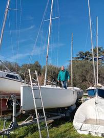 Limit bianco con carrello stradale completo di vele in ottimo stato, alcune nuove: randa, fiocco, genoa, tormentina, spi (e tangone).