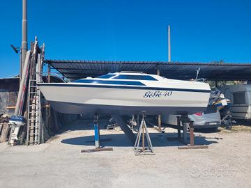 Vendesi MacGregor 19 del 1993 Power Sailer americano originale, barca 6 metri carrellabile, rimessata e pronta all’uso. + Foto: https://photos.app.goo.gl/qsjWmLnJQHNktHyy9 Natante senza patente nautica, scafo planante, vela + motore, molto versatile. Naviga a vela fino a 4-5 nodi e raggiunge 18–20 nodi a motore, ideale per crociere costiere, campeggio nautico e navigazione tra coste e arcipelaghi (es. Gargano - Isole Tremiti). Caratteristiche del MacGregor 19 Power Sailer: - facile da portare, divertente e adatta a tutti i livelli di esperienza - carrellabile con albero abbattibile (sta in un garage) - deriva pivottante e pescaggio ridottissimo - zavorra d’acqua self-righting e inaffondabile con galleggianti integrati - 4 posti letto (prua + poppa) omologata per portare fino a 5 persone - piccolo bagno con porta chiusa - ampia community di appassionati per supporto online MOTORE: Yamaha 40cv 4 tempi F40AETL con trim elettrico revisionato: - carburatori tarati - candele, girante, olio motore + piede e filtro nuovi - antivegetativo fatto - zinchi e protezione anticorrosione IMPIANTO ELETTRICO: - 12V completo illuminazione LED a basso consumo - doppia batteria servizi + batteria avviamento nuova - caricabatterie di bordo integrato CARRELLO: Carrello stradale Ellebi con libretto e revisione in regola. Con impianto elettrico nuovo e freni nuovi originali Ellebi, pronto al traino. DOTAZIONI: vele complete (randa, fiocco, genoa, scotte e bozzelli), kit razzi e fumogeni 12 miglia nuovo, 5 salvagente nuovi, timoneria con volante, luci di via nuove, sensore profondità, bussola, doccetta acqua dolce, filtro separatore benzina nuovo, doppio serbatoio benzina, parabordi, mezzo marinaio e tanti pezzi extra. Barca completa, affidabile e pronta a navigare. Disponibile per visione costa nord Gargano. Possibilità di consegna a domicilio da concordare. Altre info: https://youtu.be/hemNdJmzQBo?is=_f2OLbIwT5aag7U5
