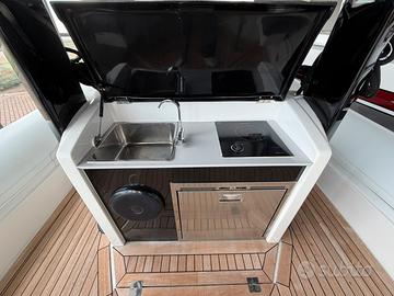 Cantieri Magazzù MX 12 Gran Sport 2017 — costruzione artigianale siciliana, un gioiello unico nel suo segmento. Condizioni impeccabili. 2x Volvo Penta D4-300 (600 HP totali), solo 650 ore moto. Joystick, elica di prua e di poppa: manovri con un dito. 11 metri x 3,80 m | Categoria B Altura | 20 persone | RINA valido fino al 2030 Ponte e pozzetto interamente in teak. T-Top con chiusure complete. Luci subacquee. Cuscineria totale. Elettronica full: radar, plotter GPS, pilota automatico, VHF, computer di bordo, monitor consumi. Aria condizionata, generatore 4 Kw, inverter, cabina matrimoniale a prua con toilette. Piastra vetroceramica, frigo, ghiacciaia. Stereo, TV, impianto audio completo. Salpa ancore elettrico, 3 pompe di sentina, apertura vano motore elettrica. Dotazioni sicurezza entro 12 miglia.