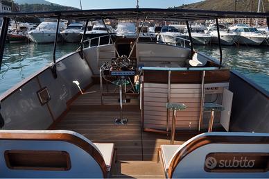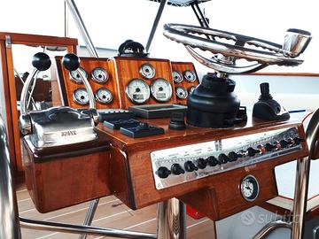 Le prestazioni sono affidate a due motori Volvo Penta IPS da 380 CV con joystick di manovra: navigazione stabile e veloce (32-33 nodi di crociera) con consumi ottimizzati. E, al di là delle performance, ciò che conquista è la qualità artigianale: solo mogano e teak massello di prima scelta, lavorati a mano e in pezzi unici, cuscineria nuova e tendalino integrale che copre quasi 25 m² senza compromettere l'estetica.