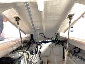 MAKO 333 ATTACK, Barca straordinaria, natante metri 9.99 fuori tutto 12.0. Walkaround con cabina comodissima e wc in locale separato con doccia, dotata di: TV, doppio impianto stereo interno ed esterno, vhf, salpaancora elettrico, flap idraulici integrati nello scafo, Delfiniera e plancetta di poppa. cuscineria interna ed esterna rossa nuova completa. impianto 12/220 con inverter, 4 batterie da 180 Ah, t-top xxl in pozzetto in alluminio elettrocolorato con tendalino nuovo e faro elettrico orientabile dalla consolle, consolle centrale, dinette esterna, pozzetto enorme con vasche del vivo a poppa e vasche del pescato in pozzetto, impianto acqua salata, impianto acqua dolce, consolle abbattibile elettricamente. strumentazione: 2Garmin vsx da 10" e da 12" gps chartplotter ed ecoscandaglio separati, con tecnologia chirp. motorizzazione: 2x250 suzuki con 600 ore di moto, manutenzione e tagliandi regolari. Qualsiasi visione e/o ispezione del vostro meccanico di fiducia. no perditempo, visibile su appuntamento. preferibile contatto telefonico.