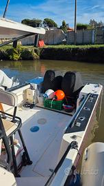 Mako marine 250 WA Barca periziata, scafo in eccellenti condizioni con 2 mani di primer epossidico hempel. No interventi strutturali no riparazioni. 8 persone trasportabili potenza max istallabile 400cv Serbatoio carburante acciaio inox 600 litri. Serbatoio 200 litri acqua dolce Doccetta acqua dolce, pompa lavaggio ponte alta pressione. 1 vasca del vivo da 200 litri 2 vasche del pescato con ombrinale di scolo, 1 ghiacciaia con scolo. 8 portacanne incasso metal 3 acciaio 316 a murata 10 portacanne da riposo su leaning post e t top. 5 batterie di cui 2 dedicate ai motori 75ampere agm 2 dedicate servizi 110ampere bosh 2025 una dedicata motorguide a litio 100 ampere 36v. Due pannelli fotovoltaici con ripartitore victron ,divergenti americani. Cuscineria completa prendisole prua e cabina. Dinette con lavandino, ripostiglio e wc, sono presenti 2 gavoni in cabina di prua,pozzetto di scolo in cabina.Prese mulinelli elettrici,porta accessori in murata,luci di cortesia blu su calpestio e luci a led. Salpa ancora elettrico lofrance. Smartcraft mercury, rete nmea2000.Doppia motorizzazione Mercury verado 175cv L4, anno 2008, ore di moto 850 con storico fatture ufficiali mercury. Possibile permuta esclusivamente con Fisherman più piccolo. Per ricerca: Robalo Grady white proline boston regulator alcustom wellcraft. No collezionisti di foto no perditempo no affaristi. La barca viene venduta con la massima serietà e ne viene pretesa altrettanta.