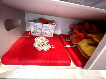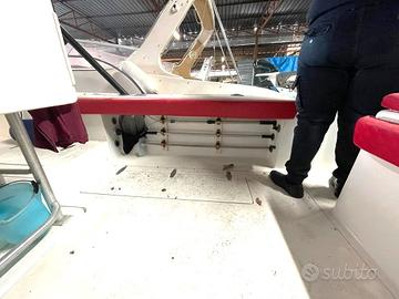 MAKO 333 ATTACK, Barca straordinaria, natante metri 9.99 fuori tutto 12.0. Walkaround con cabina comodissima e wc in locale separato con doccia, dotata di: TV, doppio impianto stereo interno ed esterno, vhf, salpaancora elettrico, flap idraulici integrati nello scafo, Delfiniera e plancetta di poppa. cuscineria interna ed esterna rossa nuova completa. impianto 12/220 con inverter, 4 batterie da 180 Ah, t-top xxl in pozzetto in alluminio elettrocolorato con tendalino nuovo e faro elettrico orientabile dalla consolle, consolle centrale, dinette esterna, pozzetto enorme con vasche del vivo a poppa e vasche del pescato in pozzetto, impianto acqua salata, impianto acqua dolce, consolle abbattibile elettricamente. strumentazione: 2Garmin vsx da 10" e da 12" gps chartplotter ed ecoscandaglio separati, con tecnologia chirp. motorizzazione: 2x250 suzuki con 600 ore di moto, manutenzione e tagliandi regolari. Qualsiasi visione e/o ispezione del vostro meccanico di fiducia. no perditempo, visibile su appuntamento. preferibile contatto telefonico.