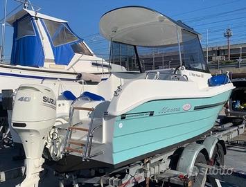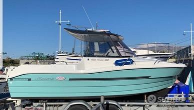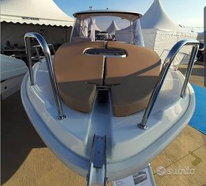 È l'imbarcazione ideale da utilizzare tutto l'anno!! dispone di due posti letto e wc marino optional sotto il medesimo quindi adatta sia per la pesca sportiva e sia per la famiglia. Con le sue alte murate e la larghezza di ben 2,30m unica nella sua categoria assicura ampi spazi nel pozzetto ed ampi passaggi laterali per accedere alla prua. Tra i suoi pregi vanta di una carena stabile in grado di garantire un'ottima tenuta di mare e grazie alla predisposizione per montare motori poco potenti, può essere guidata senza patente.