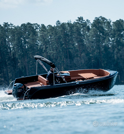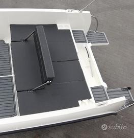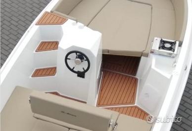Gran design creativo in solo 5.85m con prendisole di prua e poppa di notevoli dimensioni, UNICI NELLA SUA CATEGORIA !!! spazi che solitamente hanno barche di metratura superiori , oltre al modernissimo design con la sua prua moderna alta e pronunciata ( PRUA A PIOMBO TIPO WA LLY ) che danno una forma unica e forte personalità !!! capace di coniugare il comfort e lo spazio di una barca di dimensioni maggiori con le velocità e le prestazioni senza precedenti in questa categoria !!! Dati tecnici: Lunghezza: 5.85m Larghezza: 2.40m Peso senza motore kg 670 Potenza minima 40cv Potenza massima 115cv
