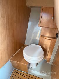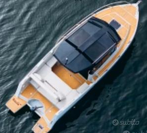 Un design moderno con la sua PRUA A PIOMBO, internamente molto comoda, un'ottima altezza di circa 2 mt dove troviamo doppio letto di prua più un terzo letto longitudinale, tavolo interno, bagno in locale separato, angolo cucina, pozzetto di ampia dimensione con divanetto ad U, grande prendisole di prua (prendisole sopra HARD top OPTIONAL).