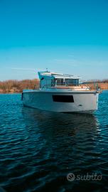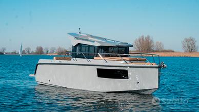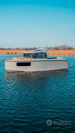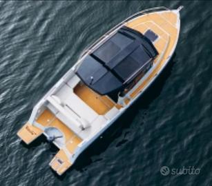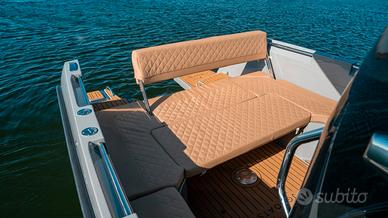 Un design moderno con la sua PRUA A PIOMBO, internamente molto comoda, un'ottima altezza di circa 2 mt dove troviamo doppio letto di prua più un terzo letto longitudinale, tavolo interno, bagno in locale separato, angolo cucina, pozzetto di ampia dimensione con divanetto ad U, grande prendisole di prua (prendisole sopra HARD top OPTIONAL).