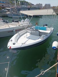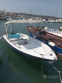 Vendo Mancini Open con motore Yamaha 40 cv nuovo (come da fattura in annuncio), con sole 150 ore di navigazione verificabili. Qualsiasi prova, si trova ormeggiata alla Lega navale del porto di Vieste. La barca monta tendalino nuovo in acciaio inox ed e' equipaggiata con tutte le dotazioni di bordo. Lo scafo e' altresì dotato di impianto auto svuotante, doccetta acqua dolce, impianto elettrico con luci a led e cuscineria nuova. Nessun lavoro da eseguire, pronta alla boa. Regalo nel prezzo carrello stradale non omologato. No perditempo e no affaristi. Vendo per passaggio a cabinato.