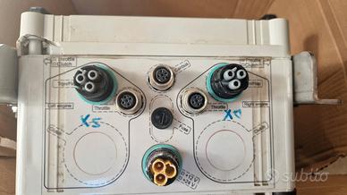 Manetta elettronica per doppia motorizzazione entrobordo o entrofuoribordo, composta da scatola bileva, cavo dati, scatola di comando per due motori con attuatori per pilotare cambio meccanico piedi poppieri o invertitori, cavi elettrici per trim o flap, cavi per comando acceleratore elettronico/digitale, cavo di alimentazione 12V. Erano montate con una coppia di motori Hyundai S250 e piedi poppieri Mercruiser ma probabilmente vanno bene anche con altre marche. Il codice dovrebbe essere 4500-VM21F oppure 4500-CM21F, non ne sono sicuro. Il kit nuovo, scontato, costa 4750 euro.