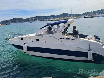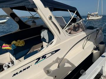 Vendo mano' marine 25 cruiser anno 2006 in ottime condizione Generali per cambio tipologia. Monta due motori entro fuoribordo diesel 120 cv mercury con consumi davvero irrisori. Piedi poppieri smontati e portati a zero quest'anno. Motori perfetti, 2 batterie da 100A nuove cambiare quest'anno, autoclave nuovo, cuscinetta perfetta, doccetta, tendalino, fuochi interni ed esterni nuovi di quest'anno, inverter 2000w, cabina di prua matrimoniale e cabina di poppa matrimoniale, bagno separato, vhf, verricello con salpa ancora elettronico con comando anche a prua, luci subacquee blu, faro profondità, due pompe di sentina, generatore portatole, serbatoio gasolio 250 lt, serbatoio acqua 200 lt, frigo interno, stabilizzatori portatili e tutte le dotazioni di bordo.