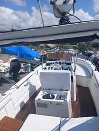 Vendo splendida mano' marine 22.50 sport fish design personalizzato motore mercruiser 225 cv EFI piede alfa one tutto PERFETTO COME UN OROLOGIO !!... Ancora in acciaio lucido, verricello elettrico , ecoscandaglio, stereo bluetooth, presa 12v ,tendalino in acciaio inox, lavello in acciaio inox + fornello a gas con bombola 3kg in dotazione tutto nuovo... plancia di poppa e pozzetto interamente in teak scaletta di risalita nuovissima regalo anche tutte le dotazioni di sicurezza con fuochi scad.2029