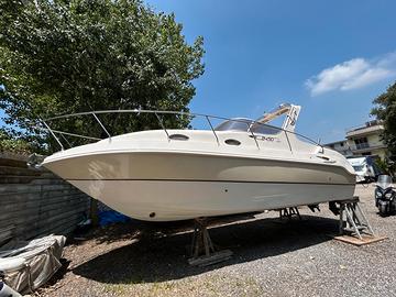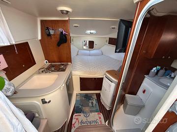 Motori con 300 ore circa, tenuta benissimo, una delle più comode e spaziose nella sua categoria, anno 2011 con 2 motori mercruiser 3000 MPI e piedi poppiero alpha one, eliche in acciaio con ottime prestazioni e consumi. Super accessoriata con: -FLAP -ELICA DI PRUA -GPS -VERRICELLO ELETTRICO CON DOPPI COMANDI DALLA CONSOLE E DA PRUA -ANCORA ACCIAIO -LUCI SUBACQUEE -LUCI SEGNA PASSI -TEACK INTERNO ED ESTERNO -IMPIANTO STEREO -IMPIANTO TV -IMPIANTO 220 VOLT -2 BATTERIE SERVIZI E 2 BATTERIE PER MOTORI -CARICABATTERIE -BOILER ACQUA CALDA -4 POSTI LETTO -CUCINA INTERNA ED ESTERNA -DOPPIO FRIGO INTERNO ED ESTERNO -BAGNO SEPARATO CON DOCCIA -WC ELETTRICO -MOBILETTI VARI AGGIUNTI -MATERASSI AL POSTO DELLA CUSCINERIA SUI LETTI -SERBATOIO ACQUA 170 LT -SERBATOIO BENZINA 300 LT PIÙ UN 'ALTRO DA 80 LT Tagliandi ordinari e straordinari sempre eseguiti da officina autorizzata Mercury tutti documentati. Altri lavori eseguiti negli ultimi anni: -TAPPEZZERIA ESTERNA -TEAK ESTERNO -IMPIANTO ELETTRICO -COLLETTORI -RISER -POMPE DELL'ACQUA -CUFFIE PIEDI -ELICHE ACCIAIO -CAVO BANCHINA -SERBATOIO ACQUA PIÙ GRANDE Praticamente perfetta in tutto sia motori che scafo. Contattare solo se interessati!!!