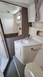 DESCRIZIONE INTERNI: Open space con letto matrimoniale di prua, letto matrimoniale di poppa, bagno separato con doccia e WC elettrico, mobile cucina con: fornello,frigo,lavello ,forno microonde ,macchina caffè. Armadietti, interni wrappati, pavimento teak sintetico grigio - Salpa ancora elettrica - Flap idraulici - 3 pompe sentina automatiche - Ecoscandaglio - Radio VHF - bagno con WC elettrico - Acqua calda esterna interna - Dotazioni sicurezza complete - Doccia interna - Doccetta esterna a poppa - Verricello elettrico - 3 batterie. Cucina esterna +altra interna - Frigorifero - Tendalini nuovi , e tendalino aggiuntivo per copertura integrale pozzetto. Cuscineria esterna in ottimo stato - Pulsantiera di prua - Impianto gas nuovo. Impianto stereo Bluetooth con casse audio - Luci cabina Led, luci Led sotto plancetta con selettore blu/bianco.