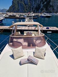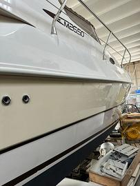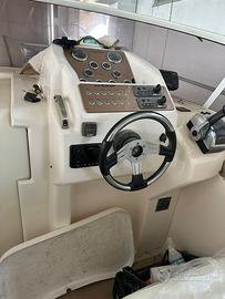 Volante, pulpito acciaio, bitta, scaletta retraibile, timoneria, luci di navigazione, passo d'uomo, parabrezza, cuscineria di prua, divano poppa con schienale, cuscineria interna, autoclave completa di doccia, locale con W.C., n. 2 pompe di sentina, bussola alta velocità, impianto elettrico, serbatoio carburante con indicatore, lavabo interno, lavandino acciaio esterno, monofuoco, kit tavolino, puntale salpa ancora, verricello elettrico 1000 watt, tromba, stacca batteria, n. 4 oblò ellittici acciaio, n. 2 prese d'aria vano motore, luci interno cabina, roll bar, frigo elettrico, tendalino parasole, pannello interruttori in radica.