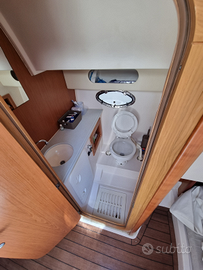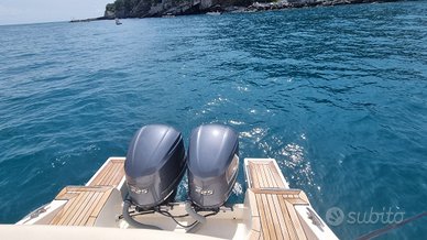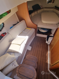 Walk around 10 mt. Fuori tutto largo 3 mt. Molto spazioso con 4/5 posti letto ,bagno con wc elettrico e cassa acqua nere. Motorizzato con 2 yamaha 225 cv , Elica di prua, flaps ,frigo ,piano cottura e lavello ,cuscineria e teack rifatti 2023 ,gps touch garmin ,manette elettroniche, boiler.Scafo e motori del 2011 ,ore motori 790. Documenti in regola. Usato solo nei 3 mesi estivi e mantenuto in perfetto ordine