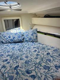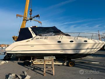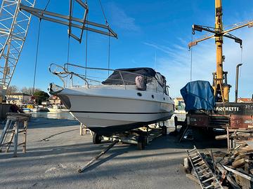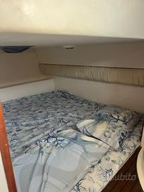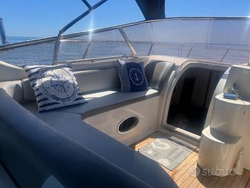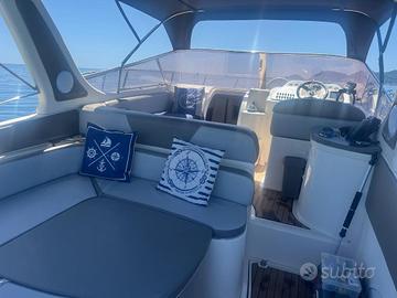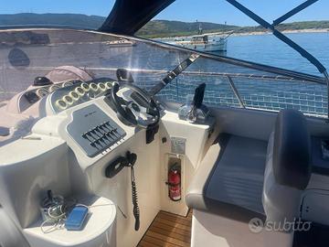 Bella imbarcazione natante anno 2006 dalla linea sportiva, con documenti in regola; motorizzata con n.2 Mercruiser MCM 4.3 MPI V6 da 225cv cadauno con sole 700h circa dalle prestazioni adeguate e dai condumi irrisori. Versione 2 cabine con armatoriale a prua separata da porta, matrimoniale a poppa, dinette e cucina a centro barca e locale toilette separato con doccia e wc elettrico. Strumentazione di bordo aggiornata; cuscineria nuova molto bella grigio in due tonalità; tendalino completo per campeggio nautico seminuovo; tek in pozzetto, doppio frigo (interno ed esterno), doppio fornello, cofano vano motori con apertura elettrica, batterie nuove, carica batteria con attacco 220v in banchina... Possibilità di permuta con auto usate recenti o d'epoca o altre imbarcazioni semicabinate anche di importi superiori. Prezzo trattabile ed interamente finanziabile.