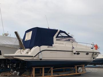 Anno di costruzione: 2005 Lunghezza mt.: 9,92 Larghezza mt.: 3,40 Motorizzazione: MERCRUISER 2 x 192 hp Bravo3x EFB DIESEL Ore moto 1.100 circa, portata 10 persone, contametri catena, contamiglia, ecoscandaglio, plotter 2019, vhf, elica di prua, passerella idraulica, piattaforma poppa allungata + teak, pozzetto in teak, frigo interno, cappottina pozzetto 2022, cappottina invernale, cuscineria di prua 2020, telo copriconsolle, lavabo + fornello in pozzetto. 2024: sostituzione turbine, revisione pompa e iniettori motore destro, revisione elica di prua, revisione trim, sostituzione manicotti. 2025:sostituzione campane. (tutto documentato). POSSIBILE PERMUTA