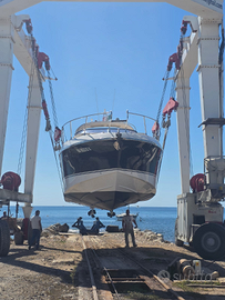 Chiusura totale invernale. Ancora con catena, salpa-ancora elettrico, cuscini pozzetto, dotazioni di sicurezza RINA.