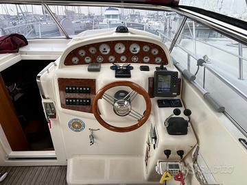 NOTE SUL PREZZO IVA Pagata - ... DATI PRINCIPALI Cantiere: Manò Marine Modello: MANO' 32 SPORT Anno Costruzione: 2007 Lunghezza: 9,92 m Condizione: usato Tipologia: Open Codice: 898795 Motori sbarcati nel 2025, turbine nuove 2026, piedi revisionati uno 2024, l'altro 2026, scambiatori di calore 2024, teak pozzetto e spiaggetta da rifare, lucidatura 2024. Barca messa in acqua tagliandata con antivegetativo marzo 2026, quindi pronto boa. Si informa che i dati comunicati dal proprietario sono ritenuti corretti ma non garantiti e non contrattuali. Le fotografie utilizzate, se indicato, possono essere di repertorio. MOTORI Potenza: 2 x 260 Hp Modello: Volvo Penta Tipologia: Entro Fuori Bordo Diesel Ore moto: 970 ABITABILITÀ Numero cabine: 2 Numero bagni: 1 Posti letto cabina: 4 Posti letto totali: 4 DATI TECNICI Lunghezza fuori tutto: 10,7 m Larghezza: 3,14 m Dislocamento: 5.000 Kg Persone trasportabili: 10 Serbatoio carburante: 480 l Serbatoio acqua: 150 l Categoria di navigazione: B - D'altura Impianto elettrico: 12V, 220V STRUMENTAZIONE ELETTRONICA DI NAVIGAZIONE Bussola, Comando motori elettronico, Contametri catena, Ecoscandaglio, GPS, Pilota automatico (nuovo), Plotter, Radio VHF. ALLESTIMENTO TECNICO E DI COPERTA Allarme motore, Autoclave, Batterie, Caricabatterie, Elica di prua - bow thruster, Faro orientabile, Flap idraulici, Lavandino nel Pozzetto, Pannelli Solari, Passerella (idraulica Besenzoni), Piattaforma, Pompa di sentina automatica, Pompa di sentina elettrica, Pompa di sentina manuale, Pozzetto Teak (e piattaforma da rifare), Salpa Ancore Elettrico, Scaletta da bagno, Tavolo pozzetto. DOTAZIONI DOMESTICHE DI BORDO Boiler, Prese interne 12v, Prese interne 220v. INTRATTENIMENTO Stereo, TV. CUCINA ED ELETTRODOMESTICI 2 Cucina (1 interna ed una esterna a gas), Fornello, Frigorifero esterno, Frigorifero interno. TAPPEZZERIE Cappottina, Cuscineria di poppa, Cuscineria di prua, Tendalino (2024 comp