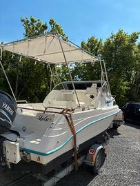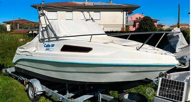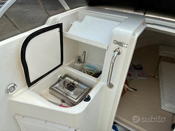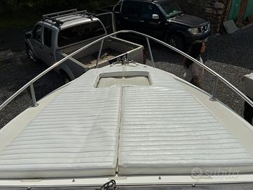 - Lunghezza: 6,13 m - Larghezza: 2,19 m - Omologazione: Categoria B - Portata: 7 persone - Motore Yamaha 115 CV 4 tempi (affidabile e dai consumi contenuti) - Serbatoio nautico in plastica da 80 litri - Kit acqua dolce con 3 punti: doccetta di poppa, lavello, interna - WC elettrico con pompa acqua salata nuova e valvole inox (carico/scarico) - Ampia cuccetta per 2 persone + possibilità di ulteriori 2 posti nel pozzetto con estensione della cuscineria dedicata - Cuscineria completa (interna/esterna) in ottimo stato, prendisole di prua - Fornello a gas con bombola - Frigorifero 12V / 220V - Impianto elettrico nuovo con attacco banchina, salvavita, prese 220V, 12V e USB - Autoradio Bluetooth/USB con casse nautiche - Luci regolamentari - Luce di fonda - Luci di cortesia pozzetto e cabina - Luci blue pozzetto + luce subacquea di poppa TUTTO LED - Portacanne inox - Pompa di sentina - Pompa acqua dolce nuova - Stacca batterie con selettore dual - 2 batterie Optima Blue da 75Ah - Impianto solare con 2 pannelli da 80W (uno per batteria) con regolatori di carica interni - Motore ausiliario Johnson 6 CV bicilindrico con supporto mobile - Ampi gavoni interni ed esterni trattati con epossidica impermeabile - Salvagente con supporto esterno - Roll bar inox lucidato con prolunga per tendalino PVC (navigagabile) - Copertura invernale in pvc su misura completa trainabile - Rimorchio Pima 1500 kg (new 2023) - Cerchi sabbiati e zincati a caldo - Modifica slitta posteriore per facilitare varo/alaggio - Verricello manuale + elettrico 12V con batteria e impianto fotovoltaico dedicato Cinghia distribuzione nuova originale Visibile a Marina di Pisa a breve. No perditempo o curiosi: prima di qualsiasi prova in acqua si richiede serietà e reale interesse all’acquisto. No giretti in barca a gente incerta e che deve pensare, si guarda al limite si prova per confema corretto funzionamento Per info e dettagli contattare in privato.