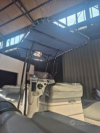 Pannello comandi servizi, prolunga prendisole di poppa con relativa tavola, presa accendisigari e presa usb ,Pompa di sentina automatica, t top in accaio inox verniciato a polvere nuovo con telo ombreggiante, Luci di navigazione, tromba, strumento GPS nuovo, scaletta di risalita 4 gradini.