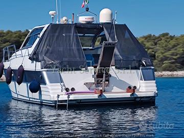 Ecoscandaglio, GPS, Pilota automatico, Plotter con antenna GPS, Radar, Radio VHF, Bussola, Angolo barra, indicatore flaps, contametri catena, Contamiglia, doppi tendalini esterni estivi e invernali nuovi, aria condizionata e riscaldamento.