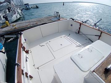 Vendo barca a motore con scafo molto performante e grande tenuta del mare . Doppio motore entrobordo lombardini con 450 ore di moto . Batterie nuove, carica batterie con fotovoltaico su tetto, Tre pompe di sentina automatiche, doppio collegamento a poppa per mulinello elettrico. Plotter con fish Finder ultima generazione Garmin (5400? solo questo) sonda passante in bronzo e tanto altro , carena antivegetativa appena fatta . Trattabile dopo visione . Accetto parziale permuta con barca massimo 7metri con un motore fuoribordo perché purtroppo non ho più la possibilità di uscire spesso a pesca e devo ridurre.