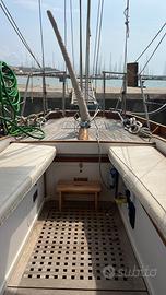 Cutter di uno storico cantiere veneziano, realizzato interamente in mogano e teak, motore diesel Yanmar da 55 cv, documenti ok, cuscineria appena sostituita, antivegetativa nuova da maggio 2025, possibilità subentro al Porto di Ostia.