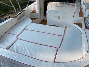 cuscineria, parabrezza pulpito, volante, scaletta, wc elettrico, lavello, luci di via, serbatoio benzina acciaio lt 275, doccia, prendisole post. tavolo, idroguida, quadretto, tromba, indicatore e imbarco carburante, pompa sentina.