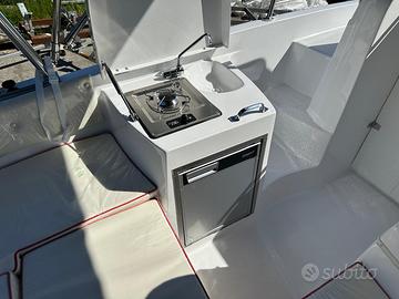 IL CABINATO PERFETTO PER GODERSI IL MARE IN SICUREZZA Marinello 650 Cabin Sport, la barca completa per ogni esigenza! Il cabinato perfetto per godersi il mare in sicurezza. È dotato di tutti i comfort per trascorrere una giornata con gli amici o una notte in famiglia grazie alla presenza della cabina, attrezzata di bagno separato con wc, doccia e lavabo. I prendisole, sia di poppa che di prua, non hanno nulla da invidiare ad uno scafo totalmente open. Scheda Tecnica: Lunghezza (mt) 6.50 Larghezza (mt) 2.50 Peso senza motore (kg) 1200 Portata persone 7 Motorizzazione massima installabile 150 CV Accessori Optional compresi nell'offerta: -Quadretto carbon look -Pompa sentina automatica -Rollbar con Tendalino in acciaio inox 3 archi -Kit gamba lega + Base Tavolo INOX -Serbatoio 70 Lt di carburante -Indicatore carburante + sonda -Imbarco benzina esterno in acciaio -Doccia completa -Tromba -Musone di Prua Standard -Cuscino prendisole poppa Vieni a scoprirla da Companymarine srl! Siamo concessionario ufficiale Marinello, Zodiac Gommoni, Rimorchi Satellite e Yamaha Marine a Mira, Venezia. Possibilità di finanziamento agevolato in comode rate! SIAMO APERTI SABATO SIA MATTINA CHE POMERIGGIO E TUTTI I GIOVEDì FINO ALLE 22.00! Valutiamo eventuale rientro di marinello brube laguna seca marine site bellingardo eolo allegra idea marine quicksilver sessa ranieri soverato honda voyager 19 open cabin mercury selva honda suzuki salento trimarchi orizzonti as marine joker salpa open cabin salmeri elite open manara aquabat bluline aquamar next jeanneau beneteau marvel satellite invictus mingolla salento