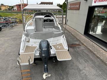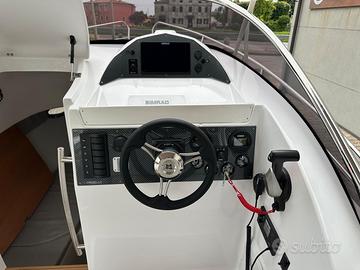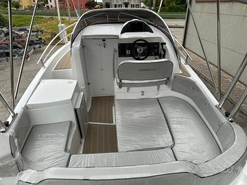 Il cabinato perfetto per godersi il mare in sicurezza. È dotato di tutti i comfort per trascorrere una giornata con gli amici o una notte in famiglia grazie alla presenza della cabina, attrezzata di bagno separato con wc, doccia e lavabo. I prendisole, sia di poppa che di prua, non hanno nulla da invidiare ad uno scafo totalmente open.