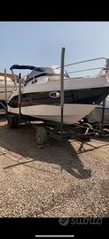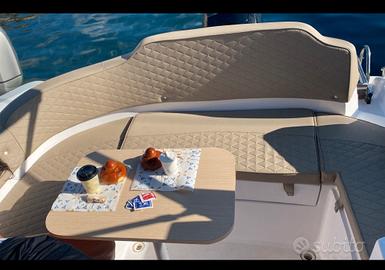 Marinello 650 cabin del 2022, motore Mercury 150 cv con 100 ore di moto, motore ausiliario 5 cv mercury sailpower mai usato, salpa ancora elettrico, frigo con congelatore, comodo bagno separato con wc chimico, ecoscandaglio Simrad go7, dotata di tutti i comfort e come nuova. Incluso carrello di vario e alaggio.