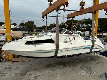 Salpa ancora elettr. con catena ed ancora da 10 kg tiemo 2 batterie p.sentina serbatoio fisso inox , roll bar inox . Lavandino . Ecoscand. Pulpiti inox , scaletta , autoclave . Motore Evinrude e-tek 140 hp del 2012.