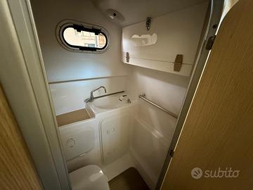 Infatti, é dotata di un'ampia cabina, che ospita 2-3 persone, e un locale separato per il wc.