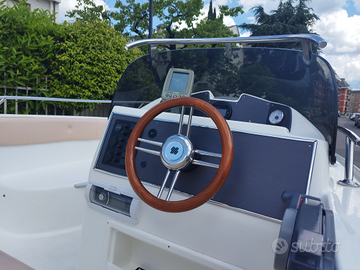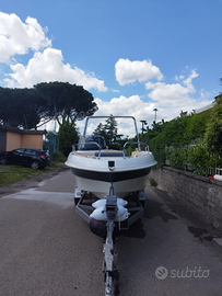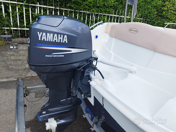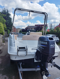 Barca appena lucidata dotata di motore Yamaha DETL 40/60. Elica nuova, serbatoio da 38 litri con imbarco esterno, strumento indicatore e sfiato, radio bluetooth e casse, due ancore, dotazioni entro 3 miglia complete, luci led, roll bar Ulisse marca sedilmare, tendalino con estensione anteriore e posteriore, 8 giubbini salvataggio, ciambella, faro di profondità di prua amovibile con comando in plancia, scaletta inox, 6 prese USB, carrello stradale omologato con documenti regolari