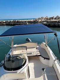 Vendo splendida barca Marinello EDEN 18 ( 5,30 x 2,30 metri) con motore Yamaha F40 GETL ( motore 40/70 4 tempi, il più potente della categoria senza patente). Sia imbarcazione che motore sono stati acquistati nuovi a luglio del 2017. Il motore ( sempre fatta manutenzione ogni anno) ha solamente 56 ore di moto! In prati ha appena finito il rodaggio! La barca è dotata dei seguenti optional: - tavolo con due basi ( in due punti diversi della barca) - commutatore per due batterie - n.2 batterie AGM da 80 AH ( valore €400) - frigorifero Deluxe a lato della pilotina ( valore €1100) - volante in legno - quadro funzioni in legno - roll bar Ulisse in acciaio rinforzato e tendalino blu ( valore €1680) - serbatoio benzina da 90 litri - estensione prendisole posteriore - plafoniera sotto roll bar - serbatoio acqua con doccia