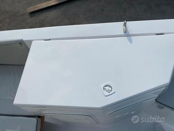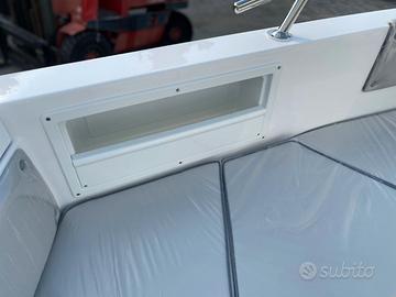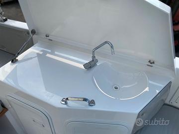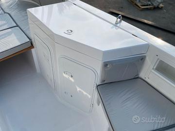 Sotto la consolle di guida, che si trova sulla destra dello scafo, si può installare un frigorifero che renderà la tua giornata più refrigerata mentre nella parte opposta viene installato di serie dal cantiere un comodo lavello, utile per ogni evenienza. Vicino a quest'ultimo (verso prua), è presente un'altra seduta, molto comoda quando ci sono più ospiti a bordo durante la navigazione.