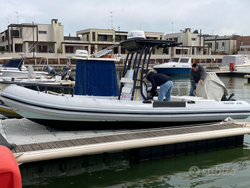 La carena é perfetta come i tubolari, non necessitano di nessun lavoro, ogni anno veniva fatto il trattamento di decapaggio e di ceratura gommone viene venduto completo di carrello ellebi da 1500 kg con giá revisione fatta con impianto luci nuovo e cuscinetti già sostituiti, nessun lavoro da fare.