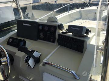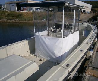 INTROVABILE! Barca NATANTE Center Console Walk Around Cantiere Marino Olbia "800 custom" MODELLO UNICO(fuori tutto 8,50mt. Scafo 7,99) con Bagno con WC elettrico, doccia (80lt. serbatoio H2o), lavaggio ponte, vasca del vivo 6 portacanne GIBI INOX, 4 portacanne seduta lombare cuscinerie complete fronte e retro, scaletta inox 120 cm. Tuna door. Chiusura completa invernale NUOVA MAI USATA, tendalino estraibile posteriore e anteriore, salpa ancora NUOVO 08/2024 con 60mt. catena, ELETTRONICA RAYMARINE CON PLOTTER