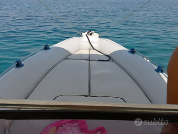 Gommone Marlin Boat 16 Top tenuto in modo maniacale senza perdite o difetti. Impianto elettrico nuovo, il gommone è allestito con apposito Teck sintetico usato su barche notevoli. Impianto doccia 50 litri, serbatoio carburante inox 100 litri. Navigazione Simrad 9 pollici. Fuochi omologati e doppio estintore. Impianto stereo con casse nautiche. Tavolo per mangiare smontabile che diventa un ottimo prendisole. Rollbar vetroresina e musone di prua con carrucola per ancoraggio, cime e ancora presenti. Tendalino 4 archi apribile velocemente per un ottimo comfort su tutto il gommone, permette di viaggiare fino a 15 18 nodi aperto. Motore E-tec 90 CV perfetto sia come condizioni, tagliandato ogni anno e ha circa 450 ore. Prestazioni e rapporto peso potenza ottimali anche in più persone, andando in planata con pochi secondi, consumi irrisori. Doppio impianto di sentina, di cui una automatica, per un'ottima sicurezza in ogni circostanza. Carrello omologato e revisionato con freni nuovi, monta verricello elettrico con telocomando a distanza.