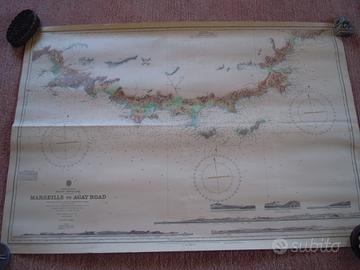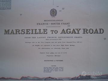 Carta nautica della costa francese del sud risalente agli anni 60, dimensioni cm. 70 x 102.