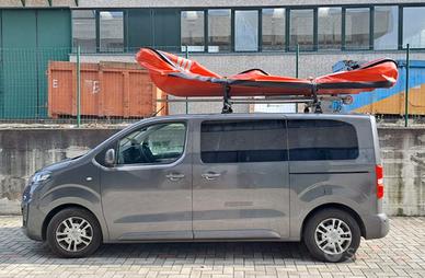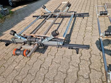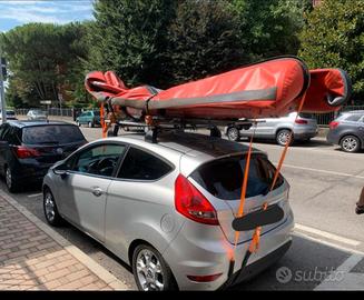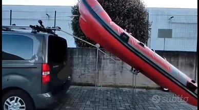 La slitta in acciaio inox è costruita per poter trasportare il gommone sul tetto dell'auto. Una volta sgonfiato e legato il gommone occupa lo spazio di una grande canoa, ed in viaggio non si percepisce alcuna vibrazione.