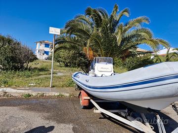 Gommone Marvel 500 con Yamaha 40/60 - Accessoriato e in ottime condizioni Vendo gommone Marvel 500 (lunghezza 5 metri), modello molto simile e paragonabile al Lomac 500, ideale per chi cerca praticità, sicurezza e divertimento in mare. Il gommone si presenta in condizioni eccellenti: Tubolari perfetti, non perdono pressione e mantengono benissimo l'aria anche dopo diversi giorni. Cuscineria completa in ottimo stato, confortevole e pronta all'uso. Motore: Yamaha 40/60 cv, con 294 ore,uno dei migliori motori della categoria: silenzioso, potente e soprattutto con consumi molto ridotti. Manutenzioni regolari, sempre trattato con cura. Grazie al peso ridotto del gommone, Dotazioni aggiuntive: Carrello non omologato tanica carburante da 30 litri. Timoneria completa, pronta per navigare. bagno in acciaio. Ampi gavoni per stivaggio di attrezzatura e oggetti personali. Impianto elettrico base funzionante. Caratteristiche generali: Il Marvel 500 è un gommone compatto ma spazioso. Facile da gestire e varare, leggero per essere trasportato anche con auto di media cilindrata. Il gommone è pronto all'uso, non necessita di alcun lavoro. Perfetto per chi cerca un mezzo immediato e affidabile per la stagione.