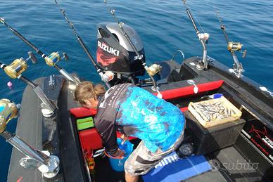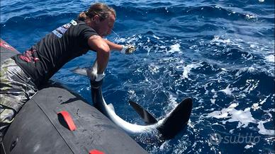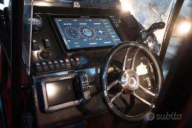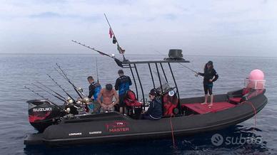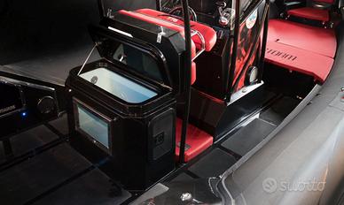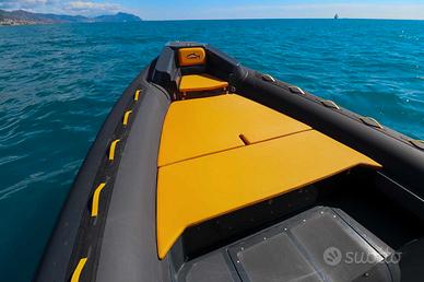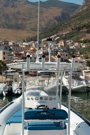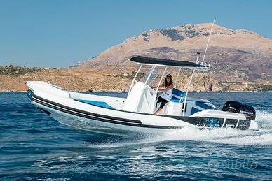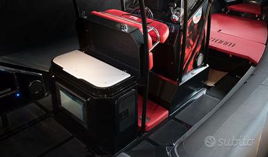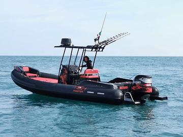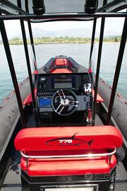 SPECIFICHE TECNICHE Lunghezza 7,70 con plancetta 8,10 mt Larghezza 3,1 mt Dimensioni abitacolo 7 x 1,8 mt Diametro tubolari 0,62/0,52 mt Omologazione CE Cat. C Compartimenti 6 Numero Persone Max 16 Peso a vuoto 1100 kg Pressione di gonfiaggio 0,20 bar Potenza Max 2 x 148 - MP 402 mono-motore XXL / Doppio Motore XL Pozzetto pesca 1,8 x 2,08 mt Vasca del pescato 375 lt Vasca del vivo 140 lt ACCESSORI IN DOTAZIONE Verricello elettrico completo di 50 mt di catena e ancora Cuscineria completa Vasca del pescato con maceratore e piastra refrigerante Seduta lombare con vasca del vivo integrata Consolle di guida Bussola Tromba Luci di cortesia Gonatore elettrico Volante VHF Bimini acciaio diametro 40 a 6 pali completo di luce led per la navigazione Portacanne Presa mare Doccia con serbatoio 60 lt Ganci porta parabordi Serbatoio carburante 450 lt completo di blower Plancette di poppa con scala inox telescopica Package con Mercury o Honda Marine Prezzo di listino 68.200,00 € + iva Ti aspettiamo in sede per configurare insieme a te il tuo prossimo gommone!!