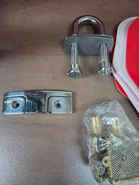 Vendo materiale nautica mai usato, acquistato per errore. TUTTO NUOVO, MAI INSTALLATO!! Valore commerciale all'acquisto circa 130 euro, vendo a 50 euro compreso di spedizione!! Cavallotto Golfare U-BOLT G Inox 316. D1 M12mm; L1 58mm; L 120mm; D 14mm; A 50mm Bitta Abbattibile Inox in acciaio inox AISI 316 lucidato a specchio. Lunghezza 115mm - Larghezza 45mm - Interasse 67mm - Sporgenza 15mm - Carico di rottura 700kg Succhiarole in ottone per pompe di sentina da parete con filtro in rete 97 x 55 mm. Per tubo (Ø): 20mm – Lunghezza compreso di attacco tubo (L): 82mm – Lunghezza attacco tubo (B): 27mm – Altezza (H): 25mm Protezioni in acciaio inox universali per musone di prua, comprese di adesivo per applicazione. Modulabili e facili da installare. 25 x 24 x 4 cm [Per barca, gozzo, vela, mare, sail, evinrude, motore fuoribordo, honda, suzuki, yamaha, mercury, boston whaler, robalo, gommone, bwa, joker boat, capelli, sessa, selva, mako, grady white, zaniboni, manò, bolentino, pesca, porto, ormeggio, ancora, cima]