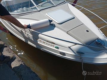 Motoscafo rimesso a nuovo 2025 totalmente revisionato. Salpa ancora elettrico nuovo Flap nuovi Tutto impianti elettrici controllati. Scafo integro. Tendalino e tenda nautica originali. Motore di scorta con piastra girevole su spiaggetta Motore con marmitte e raiser nuovi completamente revisionato Piede poppiero alfa una Generazione 2 Completamente revisionato Tendalino originale con chiusura totale. LA BARCA È COME NUOVA LA VENDO SOLO PERCHE CERCO QUALCOSA DI PIÙ GRANDE LA BARCA VIENE VENDUTA SENSA CARRELLO A 10.000 EURO CON CARRELLO 13.000. LA BARCA è a secco